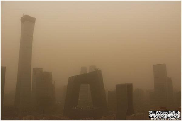 如圖所示,這是28日北京朝陽(yáng)CBD核心區(qū)的實(shí)拍圖。在PM10近2000的情況下,拍攝出來(lái)的照片好像加了一層復(fù)古濾鏡,帶著斑駁的歲月痕跡,覆著厚重的歷史風(fēng)沙,也遮住了攝像頭的追蹤。