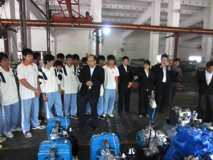 首先蔡總帶領這批興致勃勃、充滿朝氣的大學生參觀了我司的生產(chǎn)車間,細致認真地向同學們介紹了車間設備的功能與使用情況,接著又帶領他們參觀了檢驗檢測室、現(xiàn)代農(nóng)業(yè)設施、涂裝漆廠等。俗話說 “紙上得來終覺淺,絕知此事要躬行”在參觀的過程中,每到一處學生們都問這問那,不時做著記錄,表現(xiàn)出了濃厚的學習興趣。